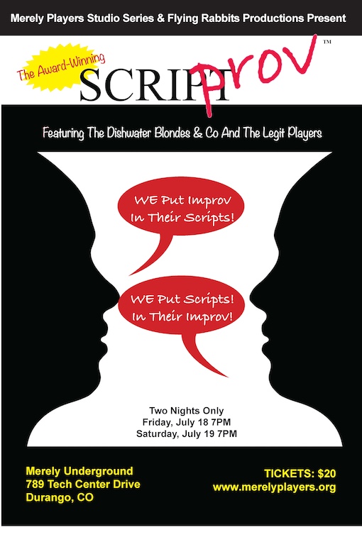 SCRIPTprov JULY 18 and 19, 2025 At Merely Underground Merely Players 49 Wedgewood Circle Durango, CO 81301 email: directors@merelyplayers.org FollowFollowFollow